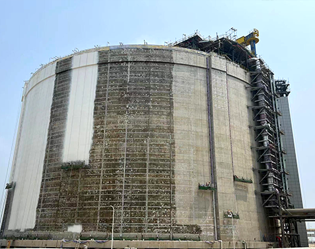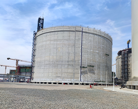北燃天津南港LNG應(yīng)急儲備項(xiàng)目的薄膜型LNG儲罐是目前全球最大的陸上LNG薄膜罐,是為北京市提供安保用氣、加速京津冀一體化的重點(diǎn)項(xiàng)目,我司承攬此項(xiàng)目二、三階段共計六臺薄膜罐的防潮層施工工作